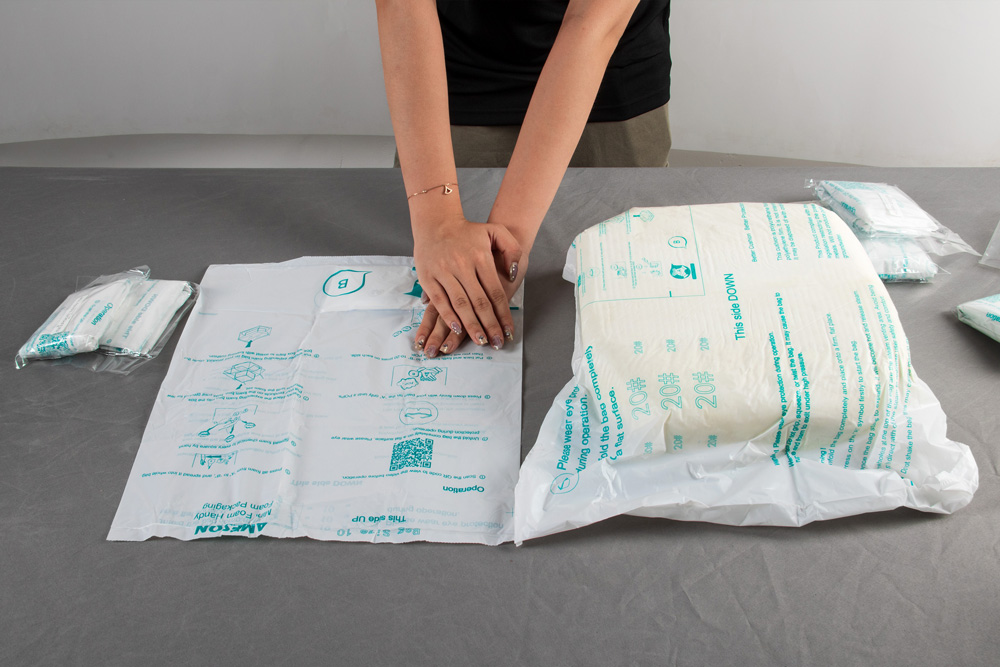 Jangan risau, guna beg buih ni tak complicated langsung. Pertama, tekan bahagian tengah beg untuk pecahkan seal dalaman. Lepas tu picit dan urut beg selama 5-10 saat untuk campurkan dua bahan kimia (Polyurethane A & B) yang ada dalam beg. Anda akan nampak beg mula mengembang dengan cepat—memang satisfying tengok!